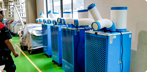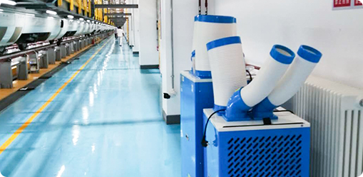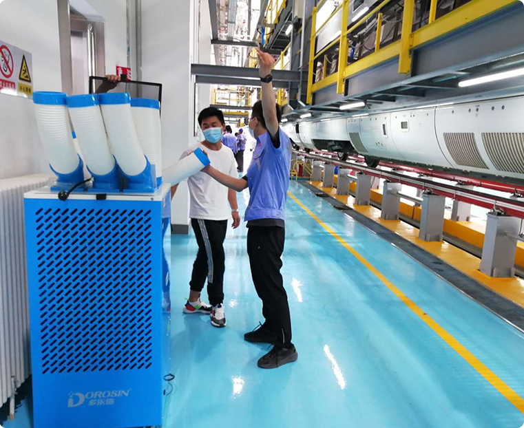 通常高铁检修加工车间面积都比较大,且钢结构居多,加工设备很多,发热量也大,还伴随油污异味等恶 劣问题,然而多乐信工业冷气机,大制冷量,压缩机制冷原理,出风是真正的空调风,无需安装,可移动 使用,针对性降温,低碳环保。