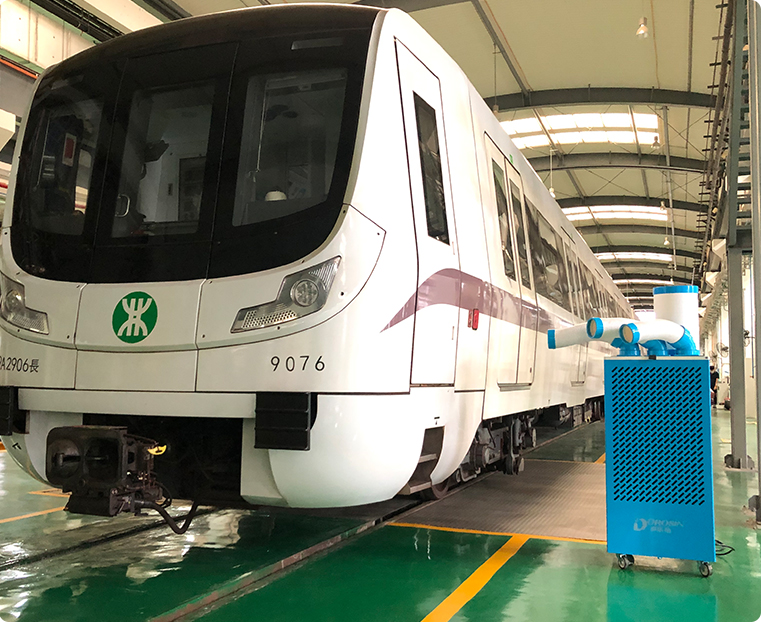 地铁检修车间空间封闭,设备密集,夏日车间更高温度可达40℃,高温闷热严重影响工作效率。多乐信移 动冷气机采用高效压缩机制冷,快速降低环境温度,强劲送风覆盖作业区域,为检修人员提供舒适环境。 灵活移动设计,可随时调整位置,满足不同工位降温需求,节能省电,持久稳定运行。